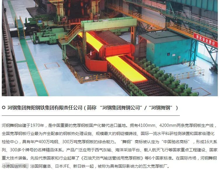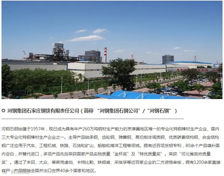 作为世界最大的钢铁材料制造和综合服务商之一,河钢已经成为中国第一大家电用钢、第二大汽车用钢供应商,海洋工程、建筑桥梁用钢领军企业,在MPI 中国钢铁企业竞争力排名中获“竞争力极强”最高评级,是世界钢铁协会会长、中国钢铁工业协会轮值会长单位。