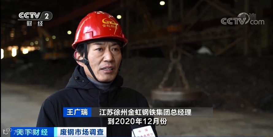 江苏徐州金虹钢铁集团总经理 王广瑞:由于废钢的积蓄量和每年的产出量还满足不了现在钢铁企业的正常需求,所以就要拓宽渠道,恢复废钢的进口。
