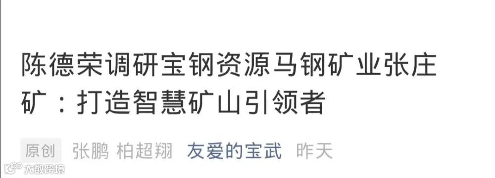 另外,不知是不是巧合,宝钢股份近日频频出现公司管理层视察矿山业务的报道。宝武集团董事长陈德容调研马钢矿业;胡望明到西藏矿业调研等。