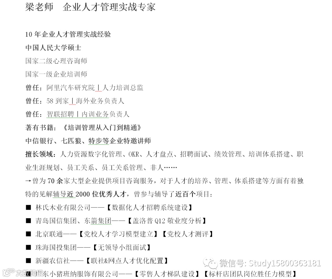 师资优选: 企业人才管理实战_梁老师 上海企训企管