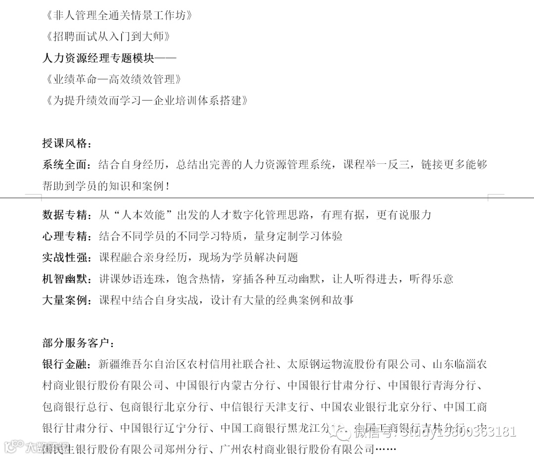 师资表获取,请回复:627