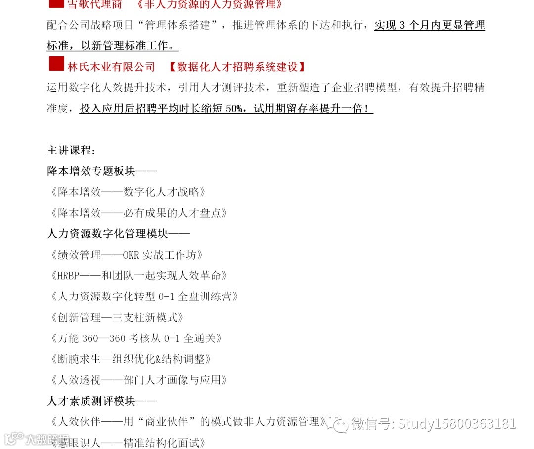 导读:师资简介师资行业目录001. 生产管理( 80位+)师资表获取,请回复:601002. 人力资源(80位+)