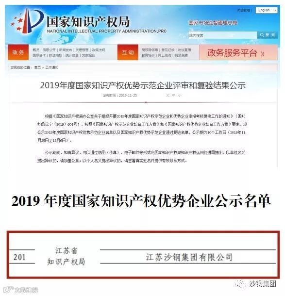 日前,国家知识产权局公布了“2019年度国家知识产权优势企业”,江苏沙钢集团有限公司凭借其在知识产权创造方面的优势成功获评,彰显了沙钢在知识产权管理方面的不俗实力。