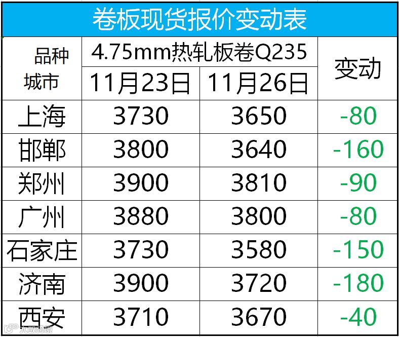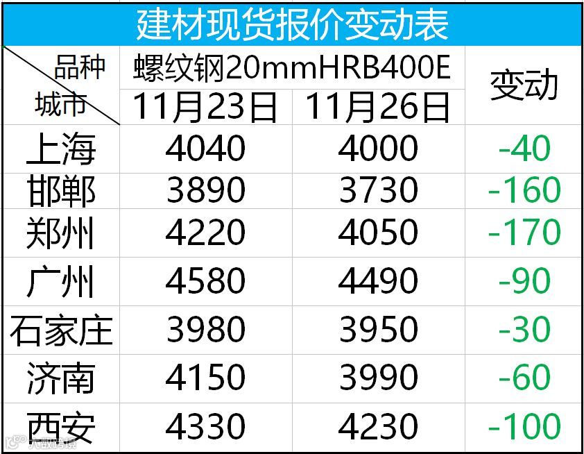 不仅如此,钢厂报价也连续下挫,普遍降幅在100元/吨,福建三江建材每吨下跌了600元/吨。具体调价信息如下: