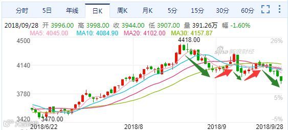 目前,空头势力很强大,主要是近期的空头持有者为了规避十一长假的风险,大幅采取平仓行为造成。预估假期之后期市可能会有回抽60日均线的动作。整体看,日线上,下跌的走势格局已经形成。