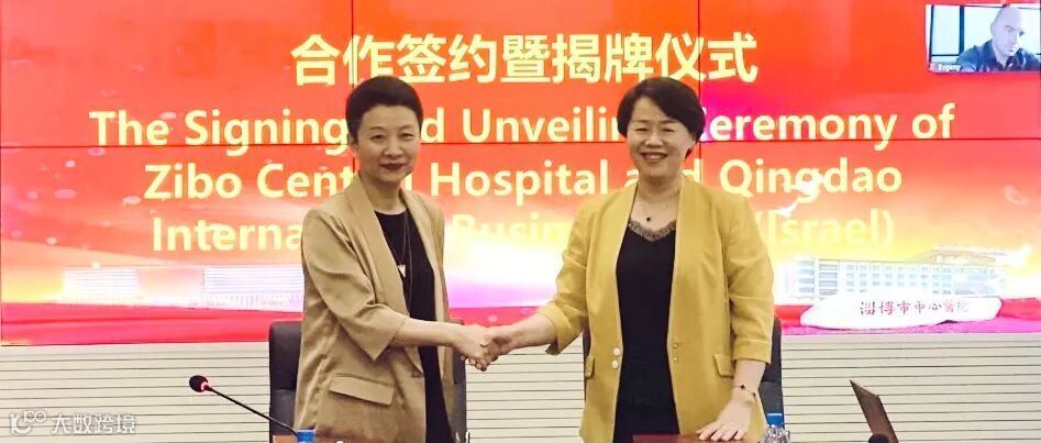 6月16日,「山东省淄博市中心医院与中以(青岛)国际客厅合作签约暨青岛以色列国际客厅创新实践基地」揭牌仪式隆重举行。中以(青岛)国际客厅发展有限公司董事长尹纳新,山东省淄博市中心医院党委副书记、副院长卢艳丽,挂职副院长于风华,院长助理周健,医康慧联创始人、董事长王德健等现场出席仪式。以色列TOP顶级医疗专家中心副总裁伊威格尼等以色列专家团队亦线上出席并见证了合作签约。