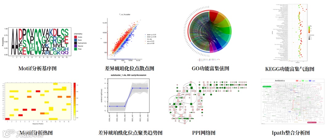 13项分析,30+分析成图。从修饰位点水平的统计分析,到发生修饰蛋白的功能注释和通路分析等,全面解析修饰差异水平变化