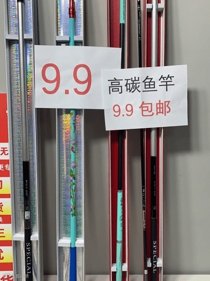 鱼竿贴牌价格"9.9包邮" ,明显低于同类产品的市场价格