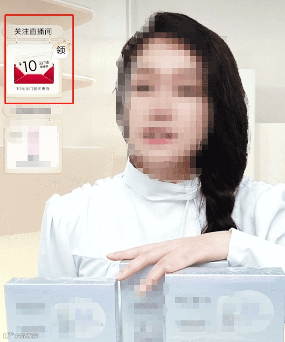 直播画面左上方合理宣传:“关注直播间送10元无门槛优惠券“