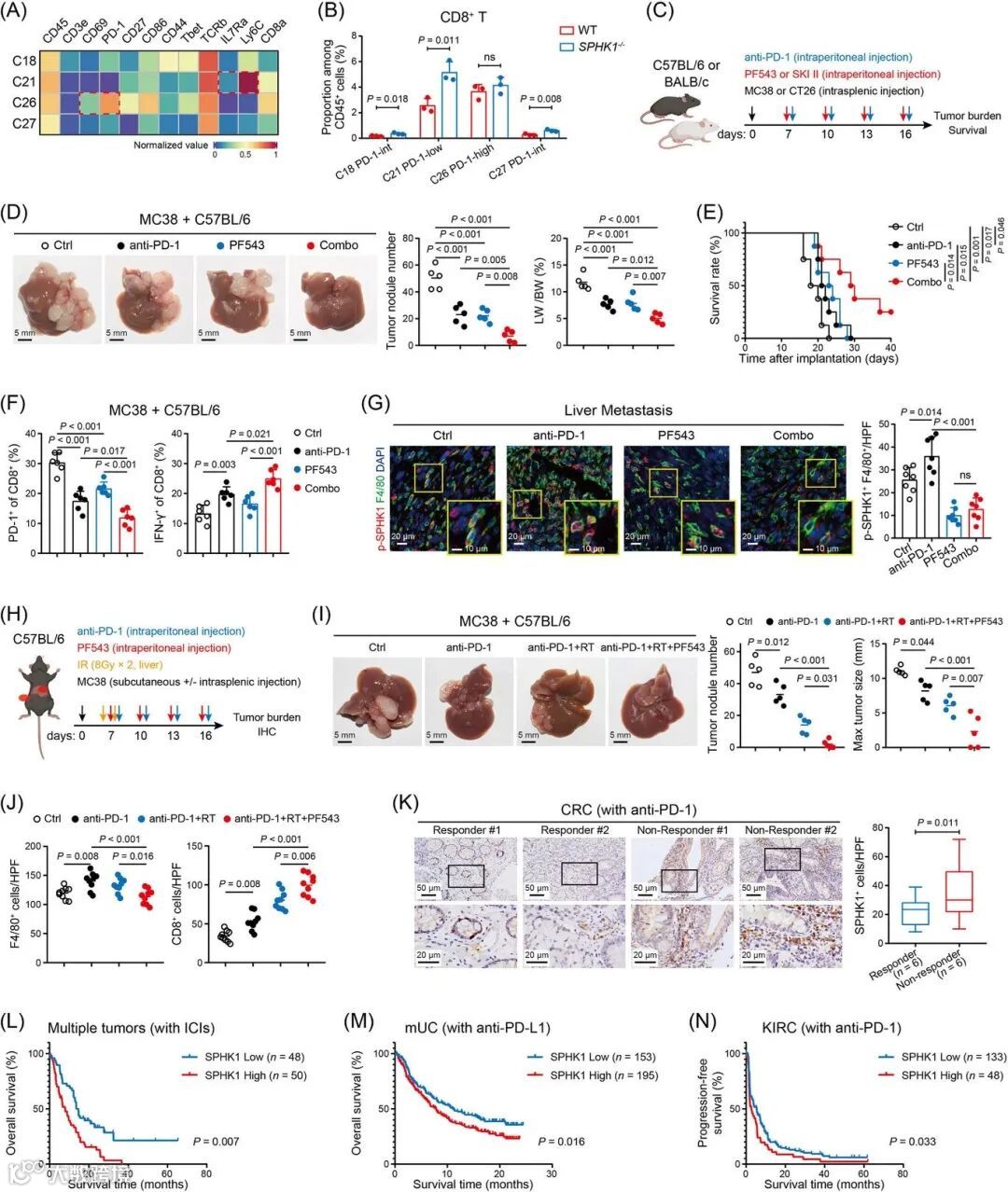 临床数据分析显示,SPHK1高表达与ICI治疗耐药相关(图7K-N)。
