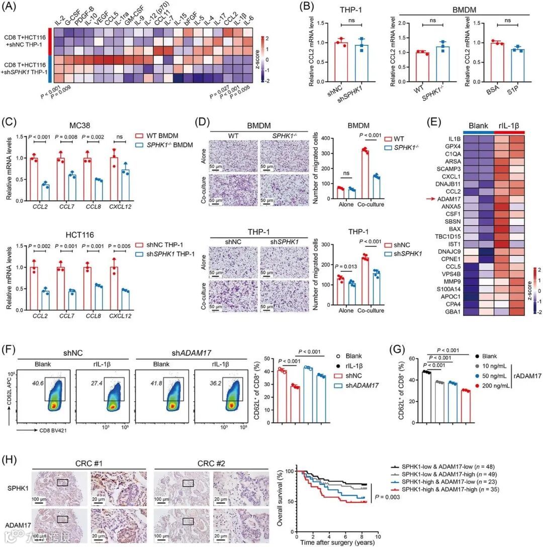 临床样本中,SPHK1与ADAM17表达呈正相关,且双高表达患者预后最差(图6H)。