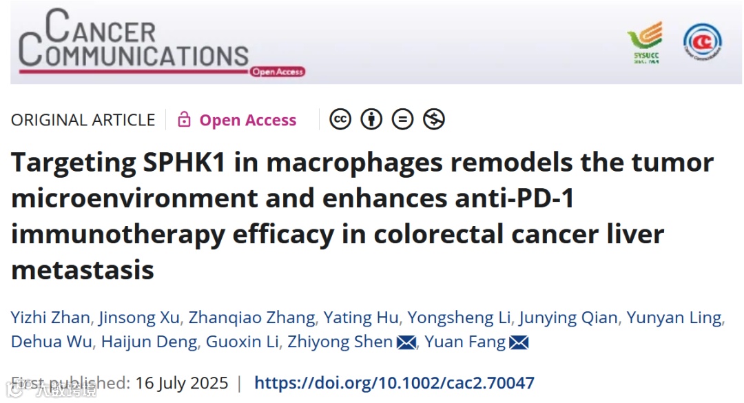 英文标题:Targeting SPHK1 in Macrophages Remodels the Tumor Microenvironment and Enhances Anti-PD-1 Immunotherapy Efficacy in Colorectal Cancer Liver Metastasis
