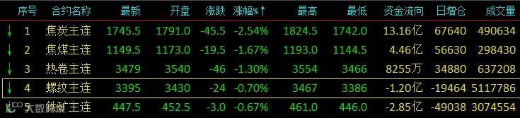 随后,华东两大钢厂永钢、中天跟风沙钢,对建材下调80元。受到主导钢厂降价影响,螺纹钢期货1805在开盘冲至3467后便掉头回落,盘中失守3400,午后反弹落空,最终3395(-0.7%)。