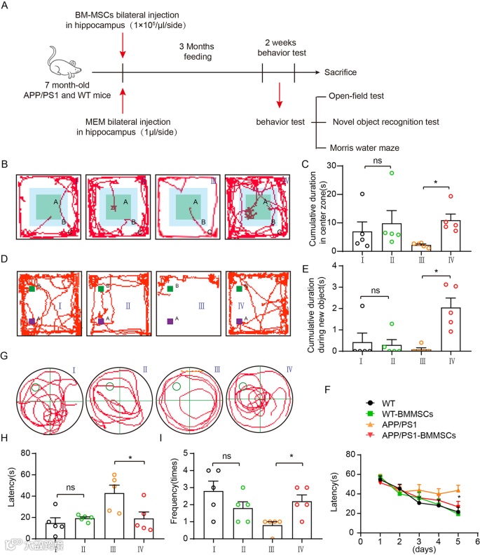 2. BMMSCs移植改善APP/PS1小鼠的认知功能