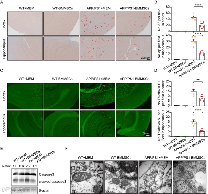 3. BMMSCs移植减少Aβ沉积和神经元凋亡