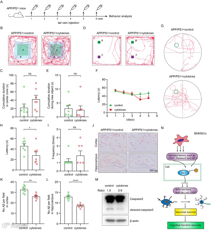尽管直接注射BMMSCs存在风险,但该研究表明,通过静脉注射细胞因子混合物同样能够显著改善AD小鼠的认知功能,这为未来的AD治疗提供了新的思路。未来的研究将进一步优化细胞因子组合、剂量和给药方式,以探索更加安全有效的AD治疗策略。