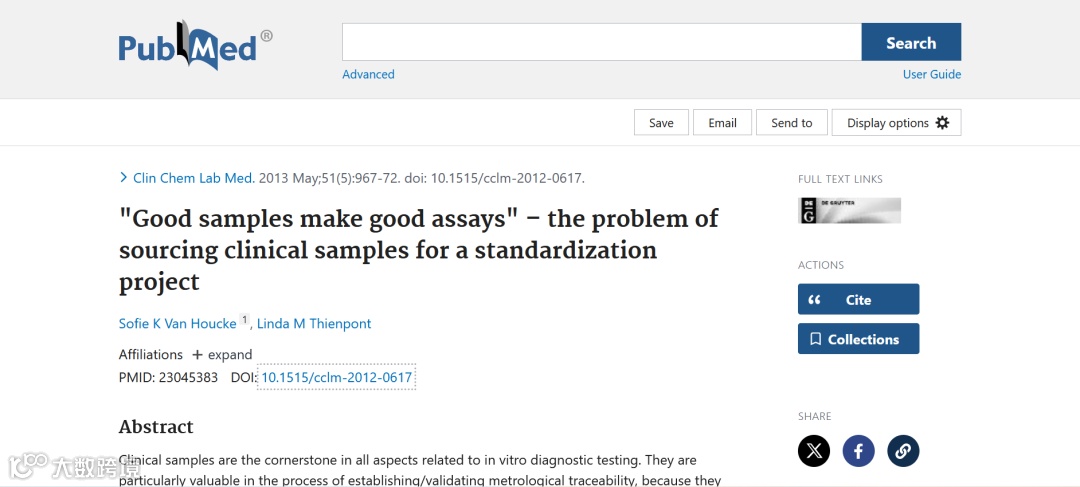 生命科学是专业性和技术性极强的科学,样本准备是生命科学研究成败的关键。正如学术期刊《Clinical Chemistry and Laboratory Medicine》(2023 IF:6.8)早年发表的一篇文章标题所说:"Good samples make good assays" – the problem of sourcing clinical samples for a standardization project. 绝对是正解!