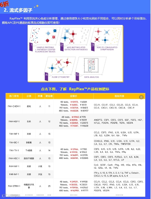 成本低,通量高,上样量少,CV值小,单次可检测多达25种蛋白因子,大量现货,欲购从速!