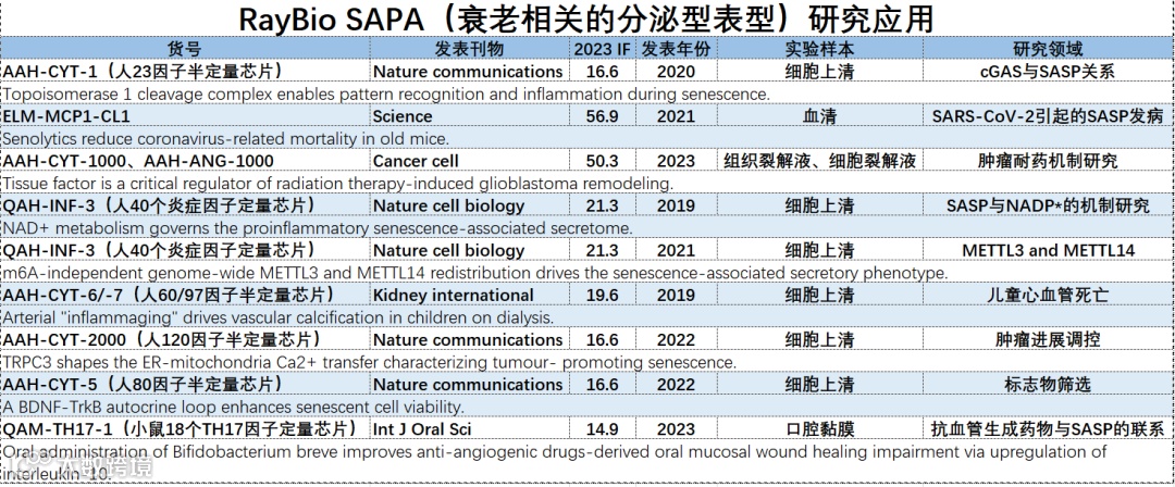 RayBio具有包含多种细胞因子试剂盒可用于SASP检测及评估。