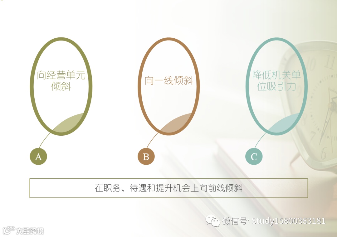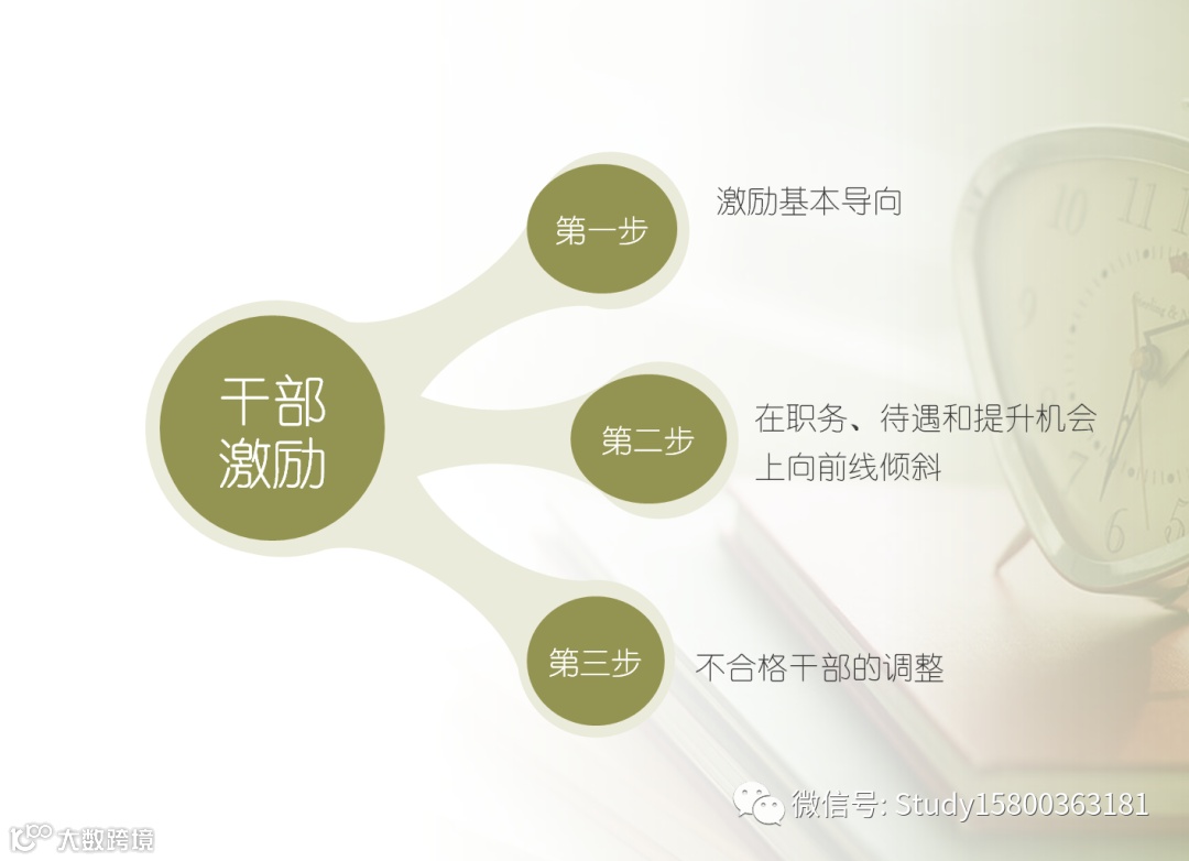 每个激励的阶段,也会设置不同的配套政策.在激励基本导向上,把工作作为工作的报酬、末位淘汰、能上能下.