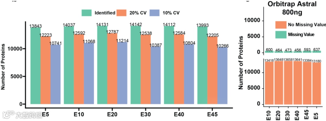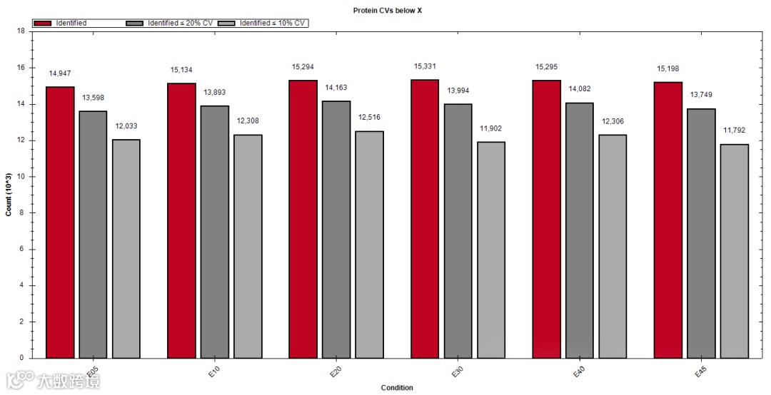 当然在使用了SN19之后,鉴定量进一步提升到超过平均15000种蛋白,CV<20%的蛋白占比也站上了90%比例,缺失值进一步降低。见下图(SN19结果)