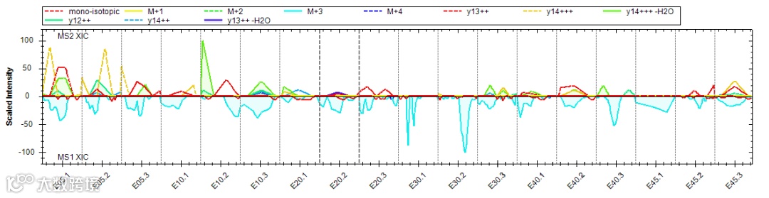 ZN211:人蛋白中的最低丰度蛋白,理论上每个样品中都含量一致,但如下的全XIC对齐图(MS2和MS1以及所有样品均整合)可以看到丰度在50以下,结果基本都很随机。