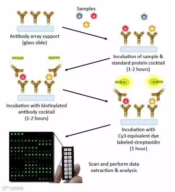 ▲ 夹心法抗体芯片原理图