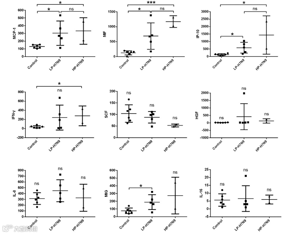 实验结果表明:HP-H7N9和LP-H7N9感染的人群在临床表征,蛋白水平上在患者入院时差异都不大,所以需要经过感染病毒测序区别感染的株型,从而进行相应的治疗。