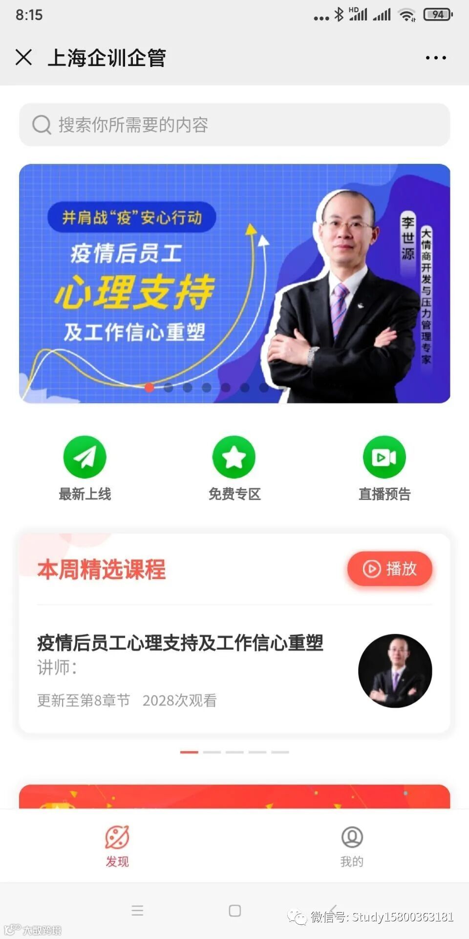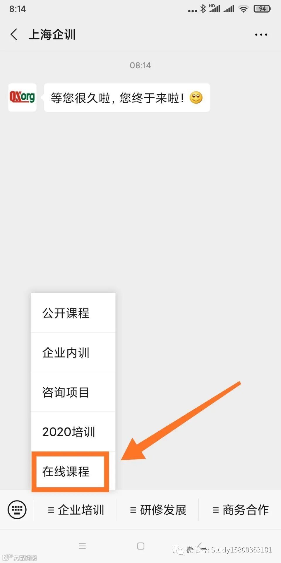 关注公众号“上海企训”——点击菜单“企业培训”——点击“在线课程”