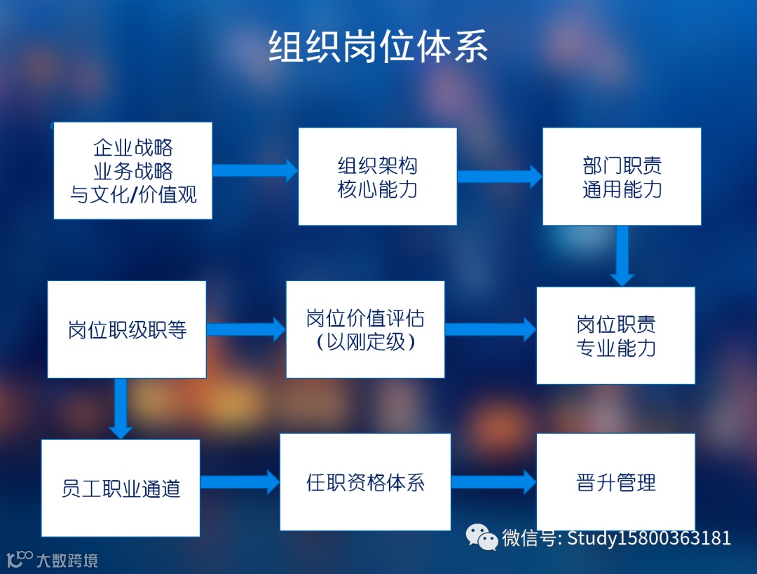 在组织岗位体系中,企业的战略、业务战略及公司的文化价值观,都是一个大的框架因素.在此基础上做全面的规划发展.