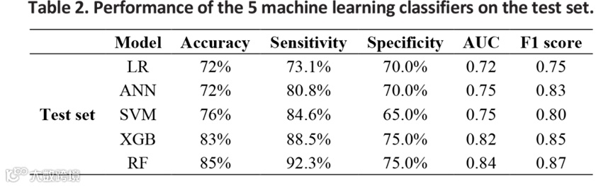 ④通过多种模型(神经网络,逻辑回归,支持向量机,XGBOOST和随机森林)构建然后评估每个模型的准确率。最终找到表现最好的随机森林模型,预测的准确率达到85%。