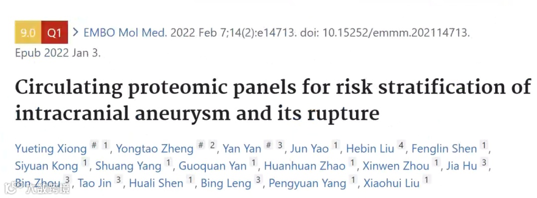 案例:基于质谱蛋白质组学找到“颅内动脉瘤”(IA)的血清蛋白标志物