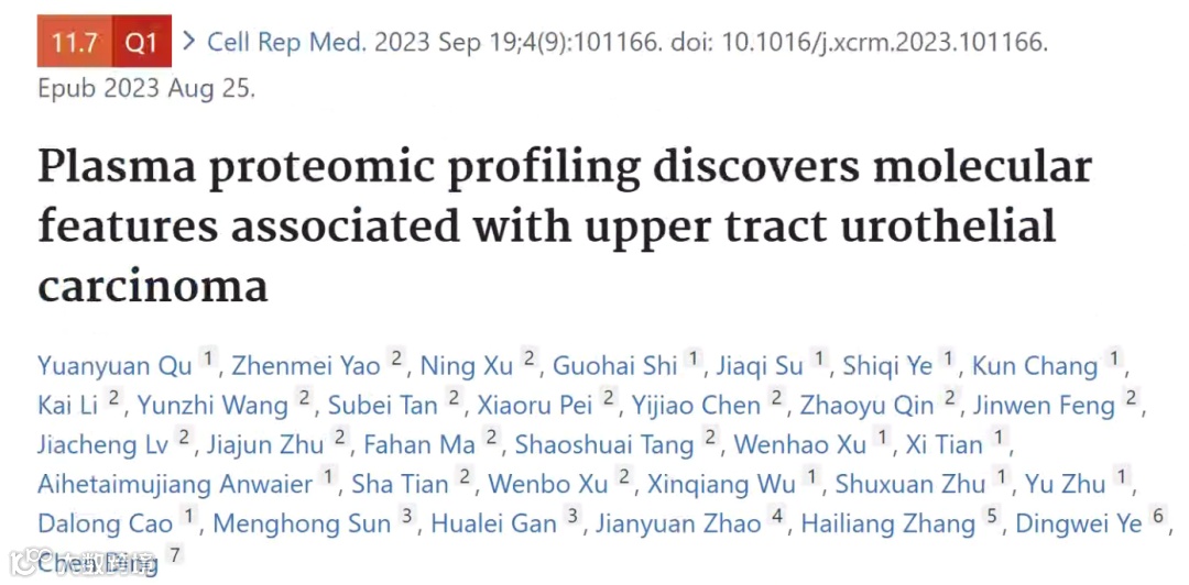 案例:血浆蛋白质组分析发现与上尿路尿路上皮癌相关的分子特征