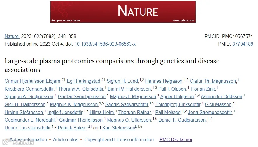 1. Eldjarn GH,et al. Large-scale plasma proteomics comparisons through genetics and disease associations. Nature. 2023 Oct;622(7982):348-358.
