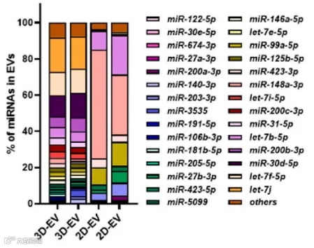 从3D/2D培养iEpiOs中分离出小型ev并利用RayBio抗体芯片AAM-GF-2鉴定ev中生长相关细胞因子的表达差异。结果发现3Dev的血管内皮生长因子VEGF含量相对较高,提示3D ev可能参与血管生成,同时结合RNA-seq结果显示一些参与细胞增殖、迁移、血管生成的的mirna(miR-31-5p和miR-146a-5p)表达也相对丰富。