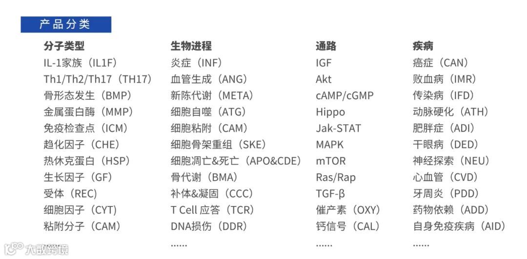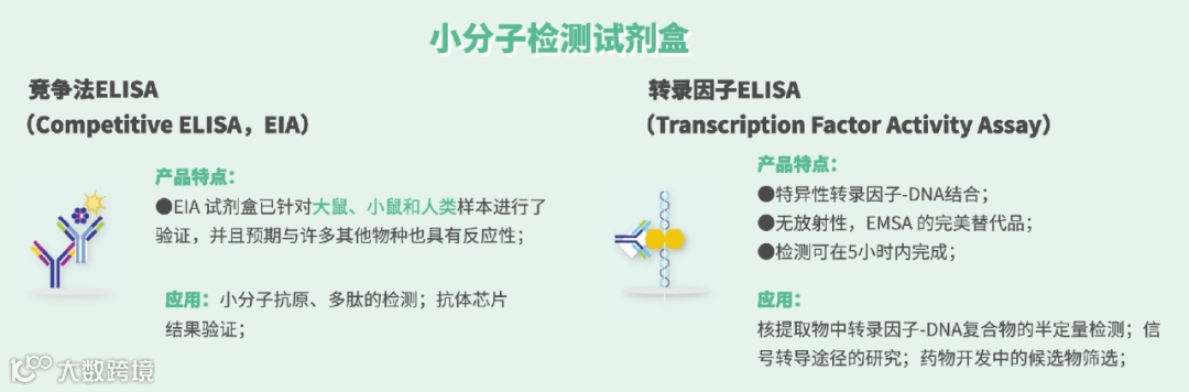 由于ELISA与抗体芯片均系利用免疫分析原理,也可简单理解为抗体芯片即高通量的ELISA,因此,凡夹心法抗体芯片能够覆盖的检测靶标理论上均在ELISA试剂盒产品覆盖范围内。而我们拥有超过16个不同种属多达万余款不同的ELISA Kits,为全球最全,满足各种蛋白检测需要。