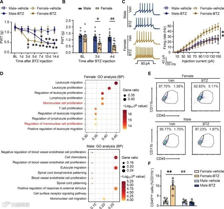 BTZ诱导的脊髓血管周围巨噬细胞积累在雌性小鼠中更显著
