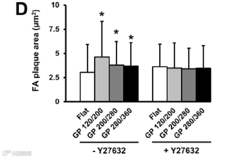 4、通过抑制Rho-相关蛋白激酶(ROCK),抑制梯度纳米柱板培养hECFCs的FA装配