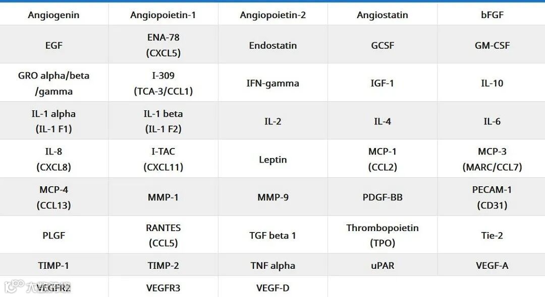芯片名称:Human Angiogenesis Array C1000产品货号:AAH-ANG-1000-8(人43个血管生成因子抗体芯片)
