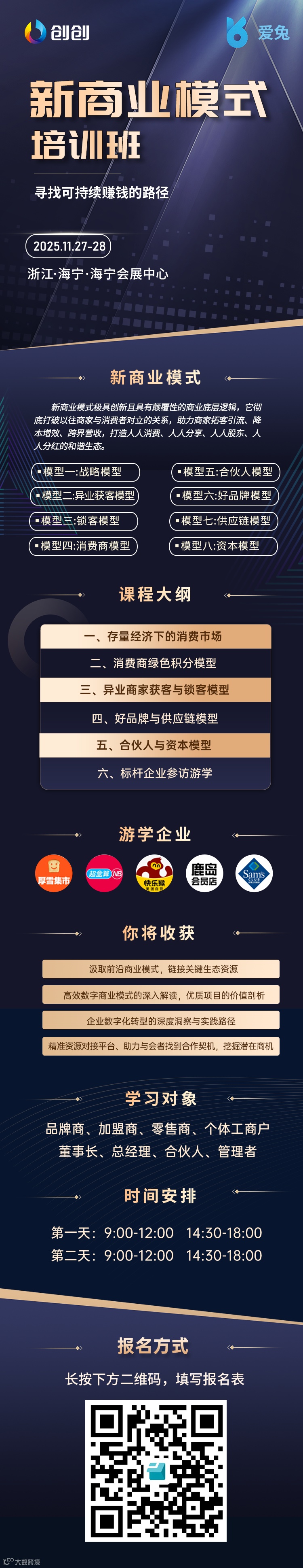 欢迎您参加创创课程!我们荣幸地通知您,2025年创创《新商业模式培训班》·海宁站--兹定于11月27日9点准时开课。具体事宜如下,请您参照流程提前做好计划,我们期待您的参与!