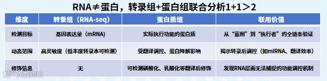 转录组 + 蛋白组联合设计,不是 “1+1=2”,而是 “1+1>2”—— 它能帮你从 “转录调控” 到 “蛋白功能” 完整覆盖生物学过程,让研究深度和创新性翻倍,不管是发 SCI 还是申请项目,都是 “加分项”!