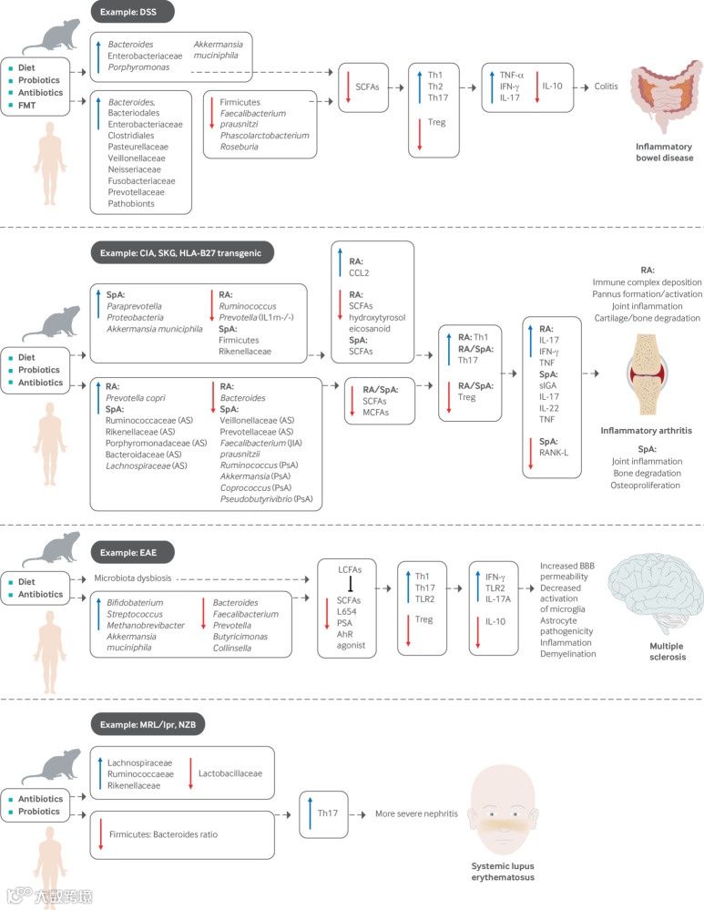 机制串联:微生物组驱动代谢物变化→代谢物调控宿主转录组→基因表达重塑疾病表型。 -