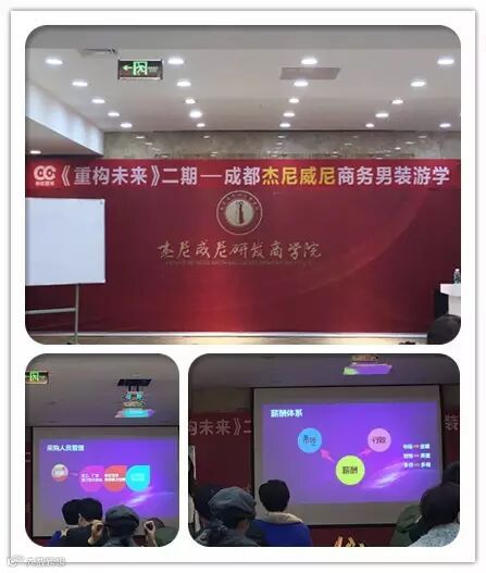 18日正式开始: 9:00—11:00分 学员们在董事长阿喜先生的带领下,参观了杰尼威尼品牌直营店及批发业务版块的9家档口。同时阿喜先生一路分享讲解了高业绩店铺打造的核心关键因素,也为学员们提供了打造高业绩店铺的方法! 11:20—17:10分 学员们来到了杰尼威尼研发商学院,该商学院专为公司员工成长,专注于商品管理、品牌企划、终端流程客户维护、员工领导力和执行力等商业培训,根据公司旗下不同品牌的运营模式制定行之有效的解决方案。 首先先由公司财务总监,十八罗汉之一分享公司数据分析、部门组成体细分工与绩效考核制度。 下午,集团旗下利鲨品牌,罗总监进行了分享:如何带领全国各地特卖场、1800人的分工运营模式!1个半小时的分享,让学员们真正学习到了如何做好店铺同频营销的精髓及指挥千人分工的系统方法! 经过短暂的休息,紧跟着公司第一个员工(元老)岳海生总监分享了:落地执行管理、供应链管理及学习落地生根方法。通过岳总的分享,也让学员们领悟到落地很难,但一步一步践行,总有落地生根的方法。 17:20—18:40分 由公司董事长阿喜先生分享了公司成长历史及分红机制,简称阿喜模式:“不能让客户赔钱,不能让员工没钱” 让所有的学员们在企业经营方面大开眼界,叹为观止! 21:00—23:30分 经过了一天的参观学习,学员们聚集在一起,进行了热烈的讨论! 接下来,学员们又举办了《重构未来》私董会必备的项目“洗衣服”; 提问:剑锋所指,招招犀利! 确认问题:一阵见血,一刀封喉! 提建议:真诚谏言,良药苦口! 问题持有者:亡羊补牢,为时未晚!