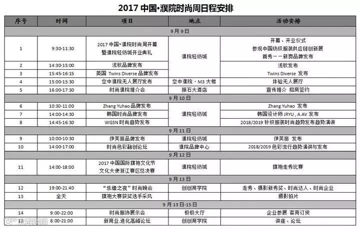 时尚周日程安排