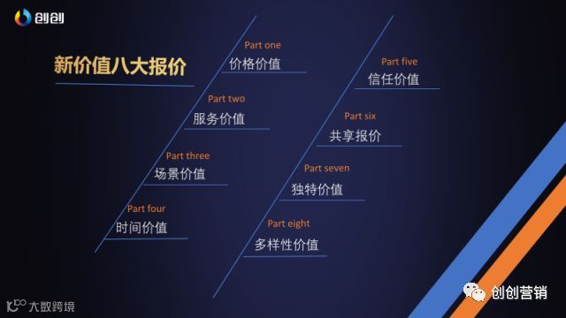 关于“价值”主要讲八个价值:价格的价值,信任的价值,服务的价值,场景的价值,时间的价值,共享的价值,独特的价值跟多样性的价值。价值有很多种,今天主要跟大家分享这八种价值。