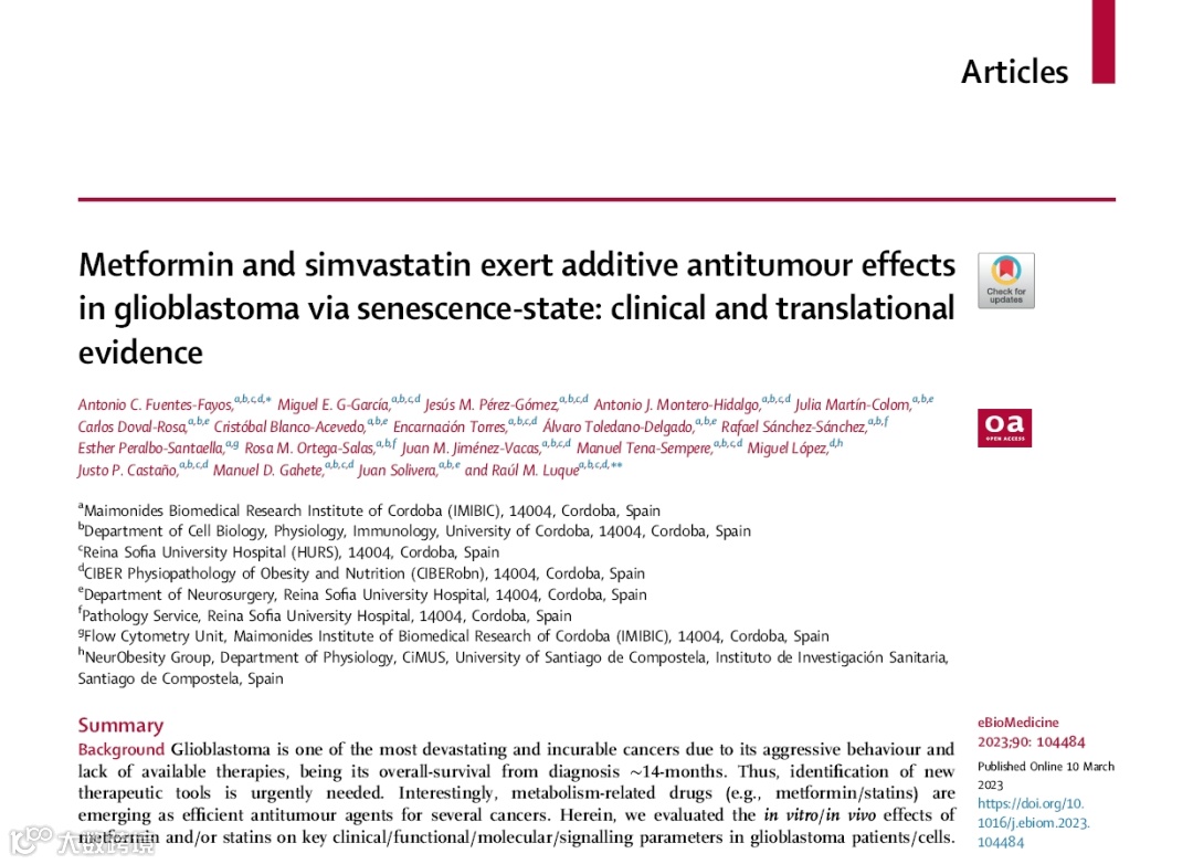 抗体芯片揭示神药二甲双胍+他汀类药物治疗胶质母细胞瘤机制