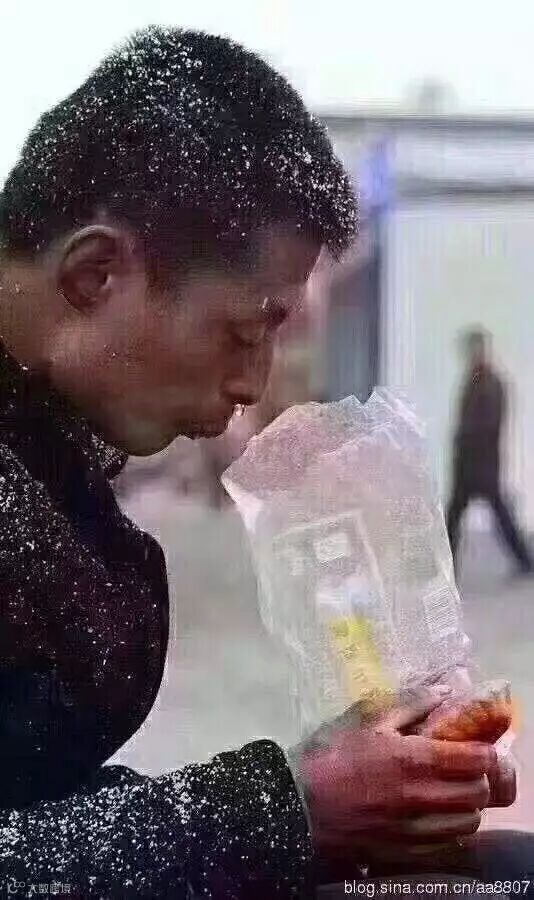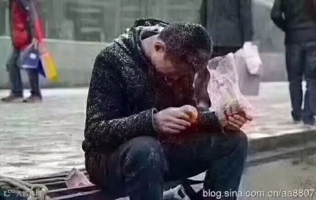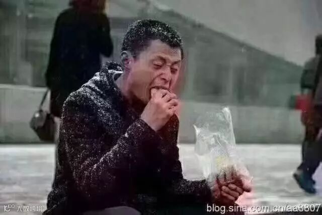 西安火车站拍到这位农民工顶风冒雪等生意的照片,他脸色蜡黄直流鼻涕,
