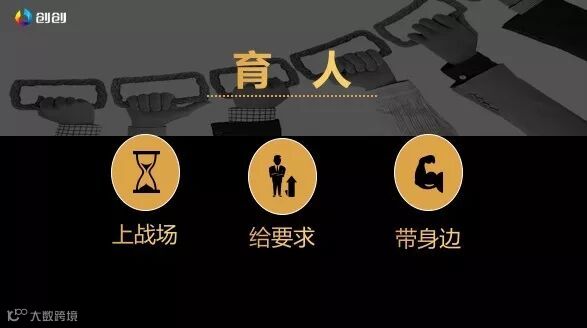 就是要培养,我讲三个关键词,第一个就是上战场。没有上过战场的将军不是好将军,所以最好的方法就是让他去锻炼,让他承担责任,我这几年收获比较大的就是创创经过了四年的时间培养出来了几十个老板。让他们自己做老板,让他们承担痛苦,他们的基因慢慢会发生改变,可能最开始前几年,他们还不习惯,他们可能跟普通员工没什么区别,但承担责任多了,吃亏吃的多了,痛苦的多了,自然就成长了。第二个,还是要给他一些要求,给他一些方向,关键的时候要点拨他一下。第三个,有些好一点的人才可以带在身边一段时间,像政府有秘书帮,在我们公司有助理帮。