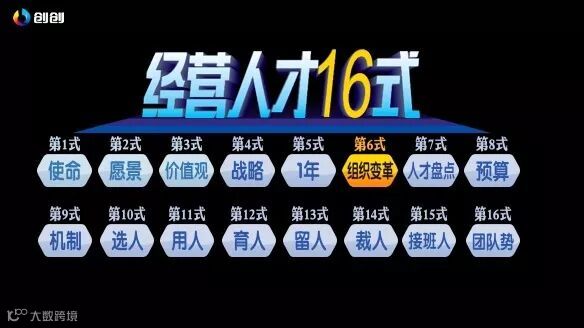 今天晚上的分享,其实杀伤力还是挺大的,没有听过人才班课程的人,大家可以好好地根据我今天晚上的分享,静下来慢慢地梳理自己的人才十六式。我们创创的伙伴,也可以帮大家做一些落地,到你的公司帮你们做一些辅导,看看十六式怎么去落地。人才的问题,要先把上面的这些顶层的东西弄好,愿景、使命、价值观、战略、一年、组织变革、人才盘点做好之后,你才能够把后面的事情做得更好。
