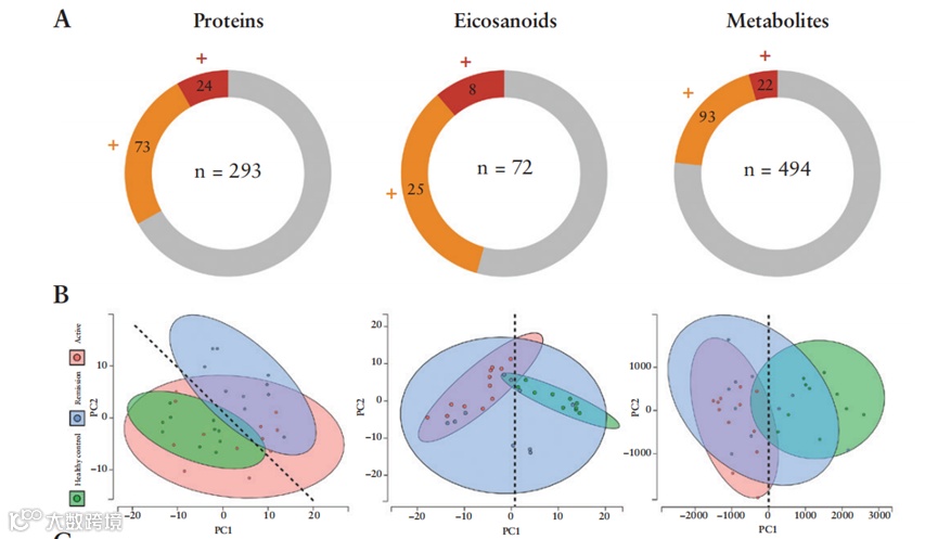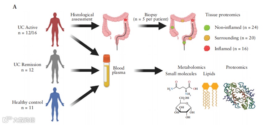 血浆样本:从活动期、缓解期UC患者和健康对照中采集血浆,进行蛋白质组、代谢组和脂质组分析。